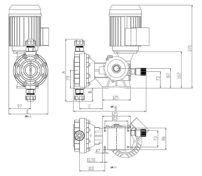 側(cè)面圖 泵頭正面圖